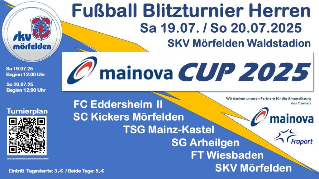 Am Wochenende des 19. und 20. Juli 2025 verwandelt sich das Waldstadion des SKV Mörfelden in den Mittelpunkt regionaler Fußball-Action. Beim Mainova Cup 2025, einem spannenden Blitzturnier für Herrenmannschaften, treffen gleich sechs ambitionierte Teams aufeinander – kompakt, leidenschaftlich und mit jeder Menge Tore im Gepäck!